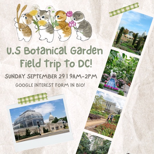 Join UMBC's The Garden for a field trip to the US Botanical Garden on September 29! They plan on leaving campus at 9AM and returning by 2PM. We will meet at Lot 8 (parking lot in front of The Garden) . The Garden will be carpooling, so please fill out this form to help us organize transportation and ensure we have all the details needed for a smooth trip.